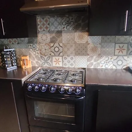 This Los Triguillos villa is equipped with a refrigerator, an oven, and kitchenware for self-catering in a dining area.